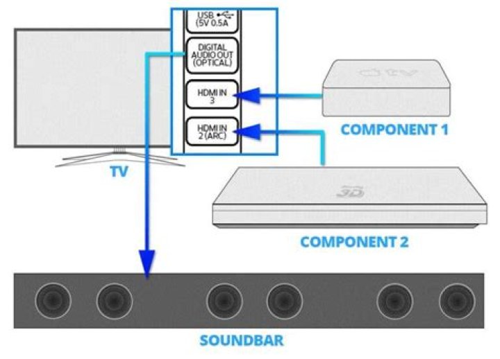 - Connect direct Tv to the one of the non ARC hdmi inputs. Connect the sound bar to the ARC hdmi on the TV and the other end into the hdmi out on the sound bar.
