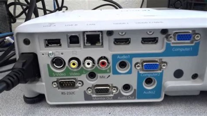 - Connect the video cable (usually VGA) from your laptop’s external video port to the projector.