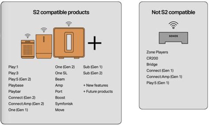 And if you own newer devices that are S2-compatible, these will also need to stay on S1 if you want them to be part of the same, easy-to-use single system. These are the Sonos “legacy” products. They do not work with the S2 software: So far, so good.