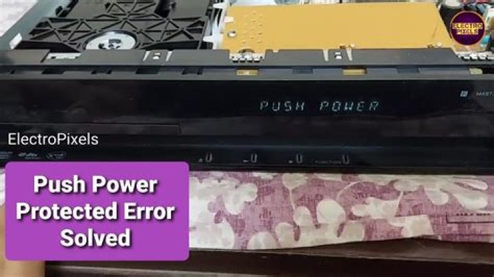 PUSH POWER / PROTECT / PROTECTOR is flashing in the display of the home audio device.