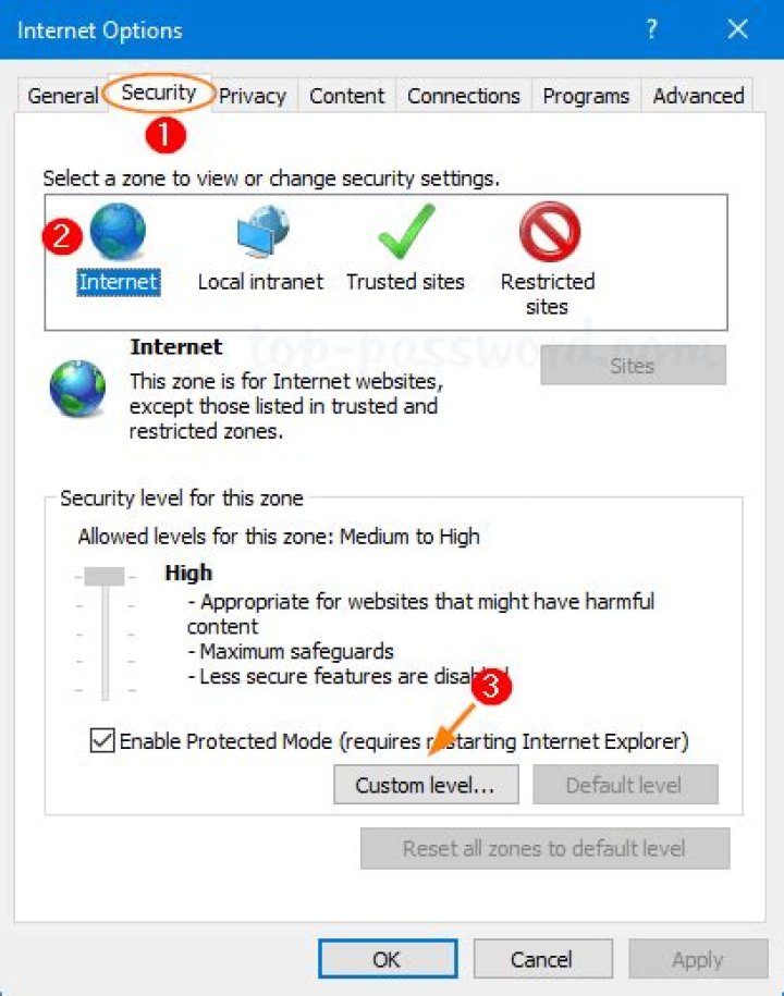 To reset Internet Explorer security zone settings to their default level, follow these steps:
