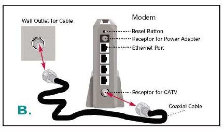 You can connect a cable TV “coaxial cable” between that jack and your cable modem. You may have a coaxial cable, possibly one that came with a cable modem starter kit from your cable service provider. If you don’t have a coaxial cable, you can get one at most electronics stores.