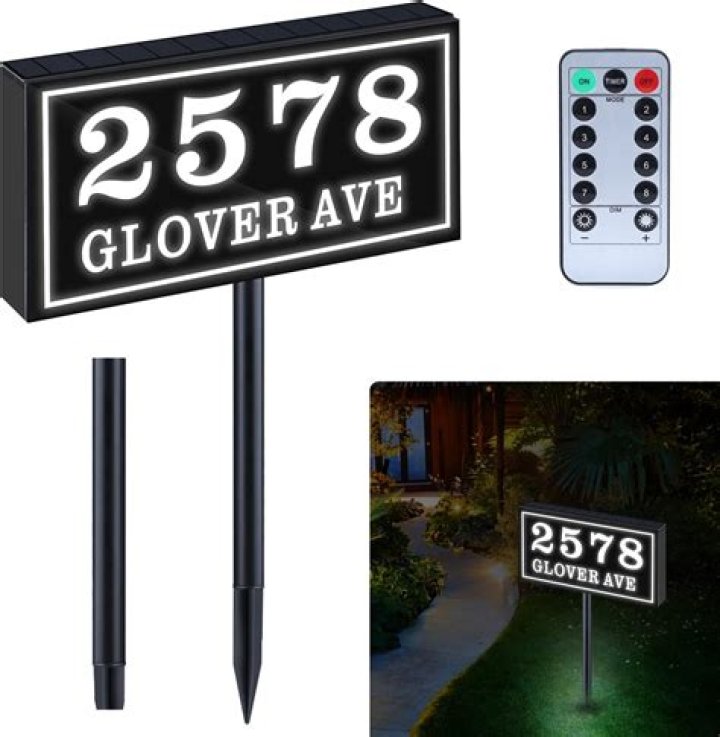 Lighted Address Sign, Carved address Sign, Solar Address Sign. Address America – Customized and Ready to Install Reflective Address Sign / name rider Solar Light. Numbers & name applied on both sides. …