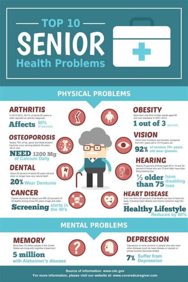 Chronic health conditions According to the National Council on Aging, about 92 percent of seniors have at least one chronic disease and 77 percent have at least two. Heart disease, stroke, cancer, and diabetes are among the most common and costly chronic health conditions causing two-thirds of deaths each year.