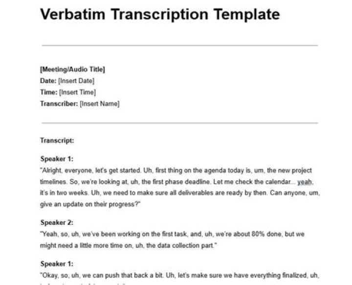 Verbatim transcription rules. True verbatim, also known as strict verbatim or simply verbatim, is a style of transcription that attempts to capture every speaker utterance. Verbatim transcripts include: Stutters. Filler speech, including “um,” “uh,” etc. Repeated words.