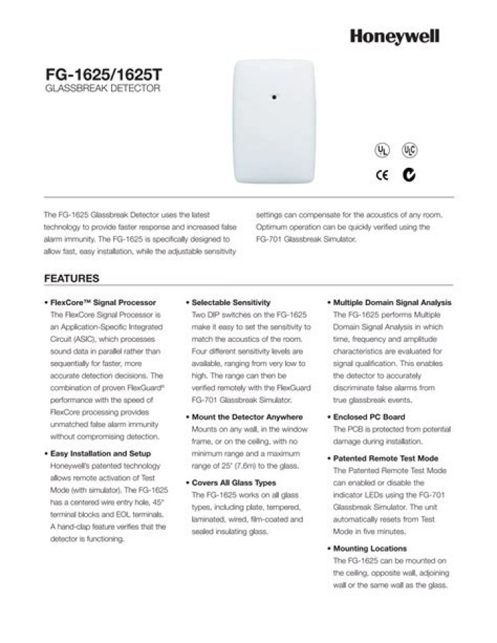 No Contract Alarm Monitoring starting at $10 a month! The Honeywell FG1625 is a glass break detector that can be added to any hardwired security system. The FG1625 is part of Honeywell’s Inte… The Honeywell FG1625 is a glass break detector that can be added to any hardwired security system.