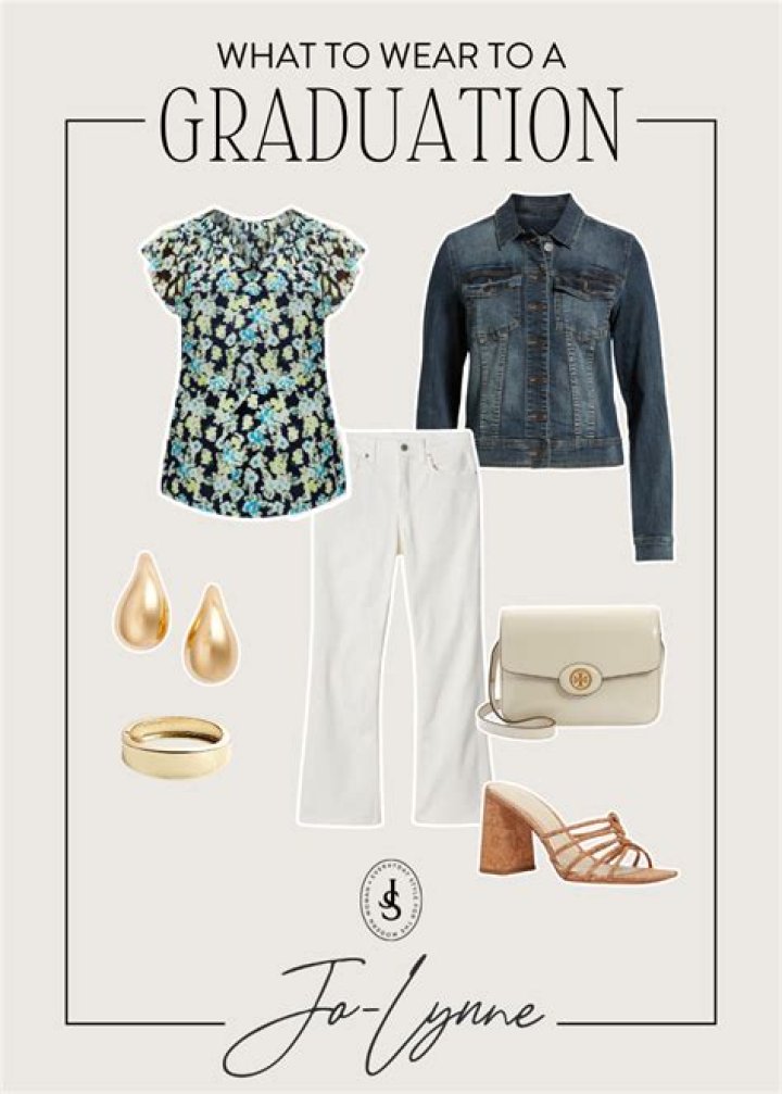 Business casual or dressy casual is always appropriate. For women, a classic choice is the type of dress you might wear to the office, flattering in color and silhouette, but not revealing. Or pair a jacket with a dress or skirt. Adding a jacket over a maxi dress is an on-trend look that’s perfect for graduation.