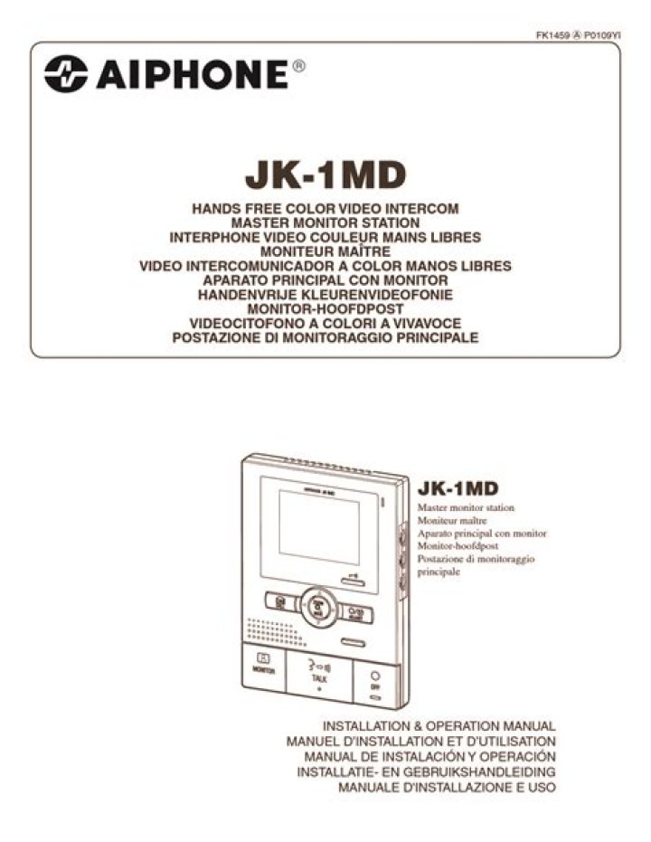 INSTALLATION & OPERATION MANUAL MANUEL D’INSTALLATION ET D’UTILISATION MANUAL DE INSTALACIÓN Y OPERACIÓN INSTALLATIE- EN GEBRUIKSHANDLEIDING MANUALE D’INSTALLAZIONE E USO JK-1MD Master monitor station Moniteur maître Aparato principal con monitor Monitor-hoofdpost Postazione di monitoraggio principale