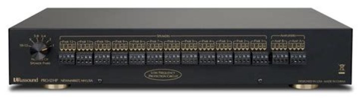 The PRO-12HP is a robust, efficient dual-source speaker selector for up to 12 pairs of speakers. Designed for demanding applications, this high-quality speaker selector features a low-frequency protection circuit to reduce subsonic signals. This allows higher power operation without amplifier shutdown. More…