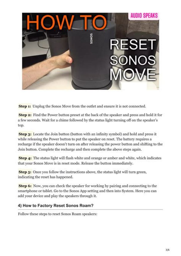 Resetting your Sonos will delete all of the data stored on the speaker and allow your Sonos system to be registered to a different email address so its the final step to take before shipping your speaker off to a new home. To factory reset your Play:1, Play:3, Play:5 (gen 1), Connect, Connect:Amp or Playbar: