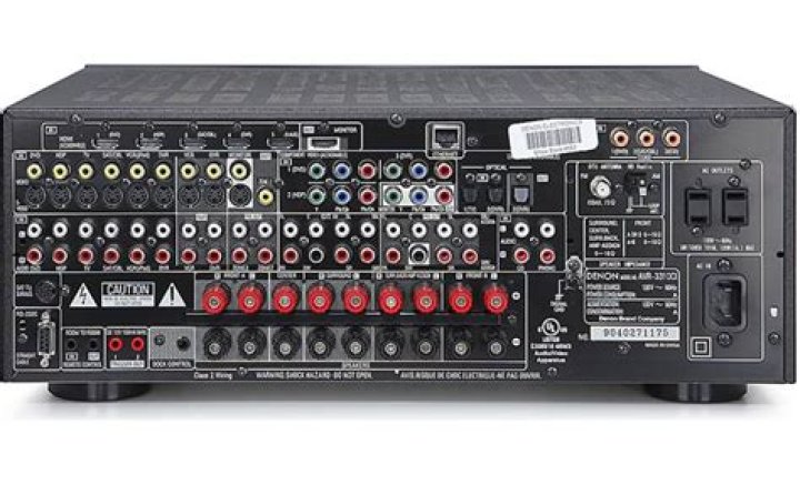 The rear panel is one solid wall of connections. At the top are the HDMI inputs (5) and HDMI output (1). An Ethernet port is just to the right of the HDMI jacks. This is used to connect to your network for updating the firmware. Underneath the HDMI jacks are the composite video sets and component video sets.