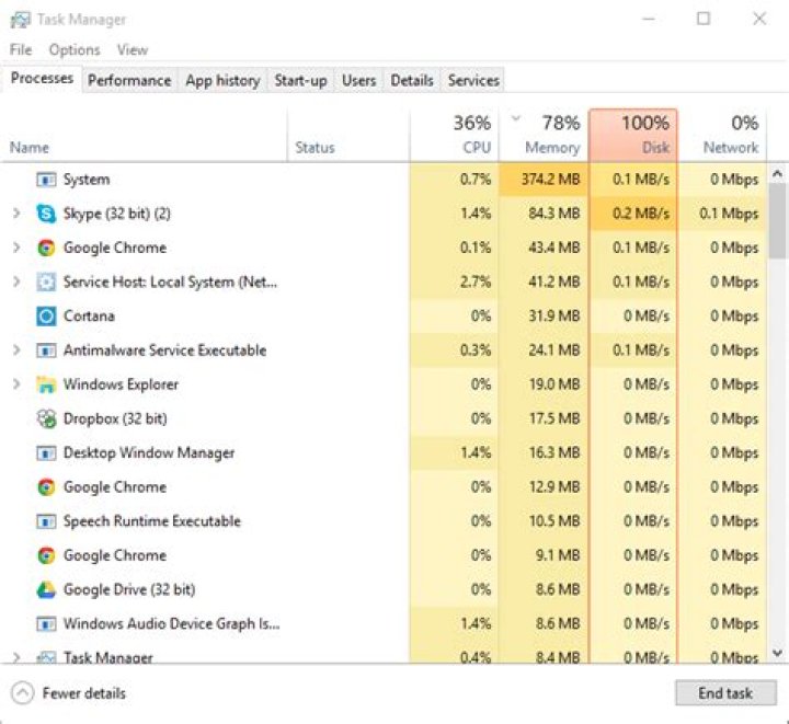 7 fixes for 100% disk usage on Windows 10