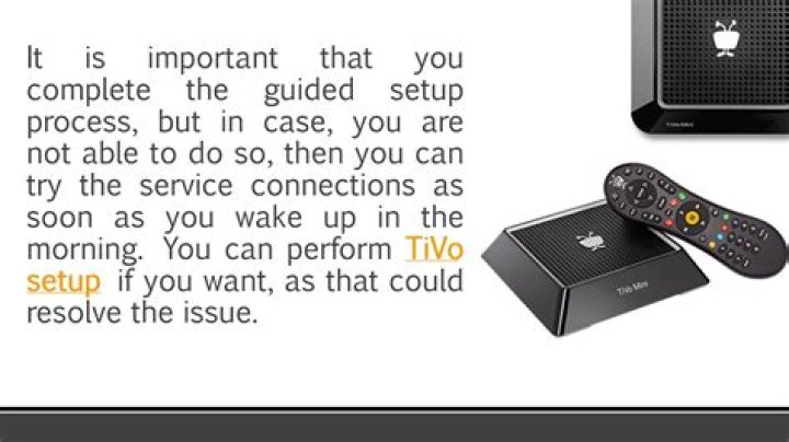 Your TiVo box needs a high-speed Internet connection to receive program listings, TiVo® service updates, and on-demand content. However, if you plan to stream shows to/from other TiVo boxes, a wired connection is highly recommended.